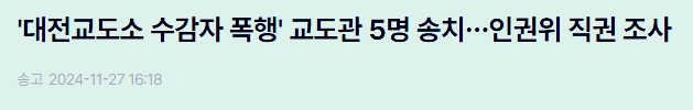 재소자가 교도관들에게 집단 구타를 당해 갈비뼈가 부러져 실려 가는 나라.