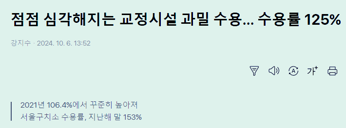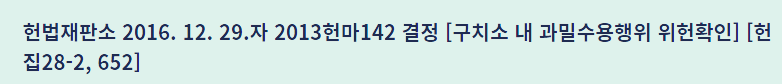 예컨대 헌재는 2016년에 수용기관 내 과밀수용이 위헌임을 선언했다. 헌법재판소가 엄격·근엄·진지하게 판결했는데 어떻게 되었을까?