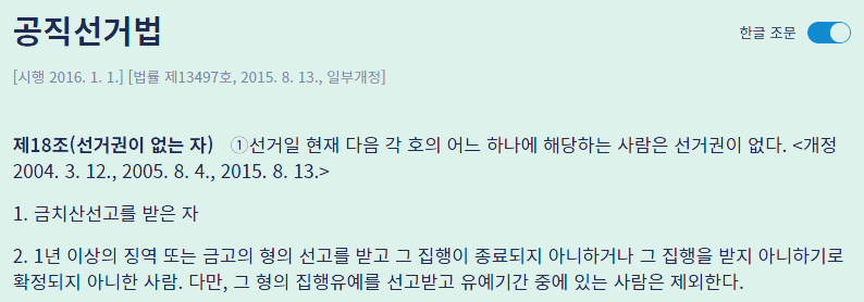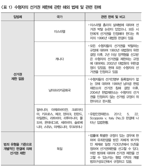 그 결과 2014년 헌법재판소가 수형자 선거권 박탈 규정이 위헌임을 선언했다. 그리하여 법이 개정되었는데···